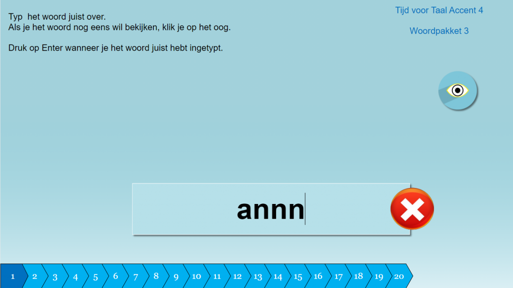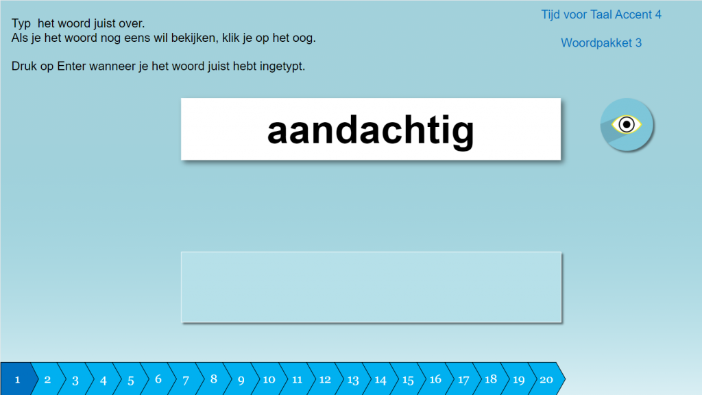Tik de woorden juist over. 20 Woordpakketten met elk 20 woorden
